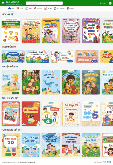 •  Sách giấy: Thư viện số Dlib MN quản lý và số hoá sách thư viện theo chuẩn Dublin Core, giúp tìm kiếm và truy xuất thông tin dễ dàng. Môi trường số tiện lợi cho quản lý tài nguyên và mượn trả. Phụ huynh và học sinh dễ dàng tiếp cận nguồn tài nguyên, khuyến khích đọc sách tại thư viện hoặc mượn về nhà.